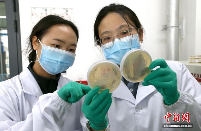 青海年夜教农林迷信院死物技能研讨所,任务职员正正在不雅测菌液发展环境。中新社记者 弛忠苹 摄