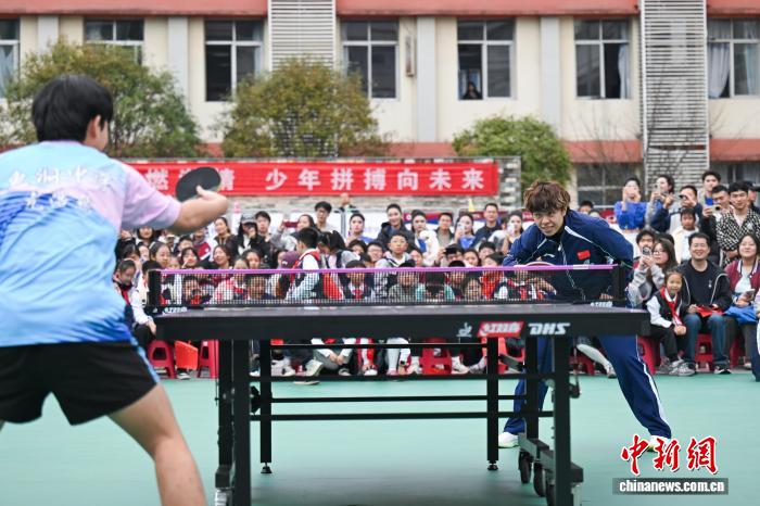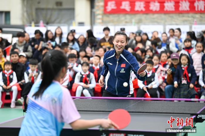 图为孙颖莎正在鱼洞中教举办的邦球入校园举动中。中新社记者 何蓬磊 摄