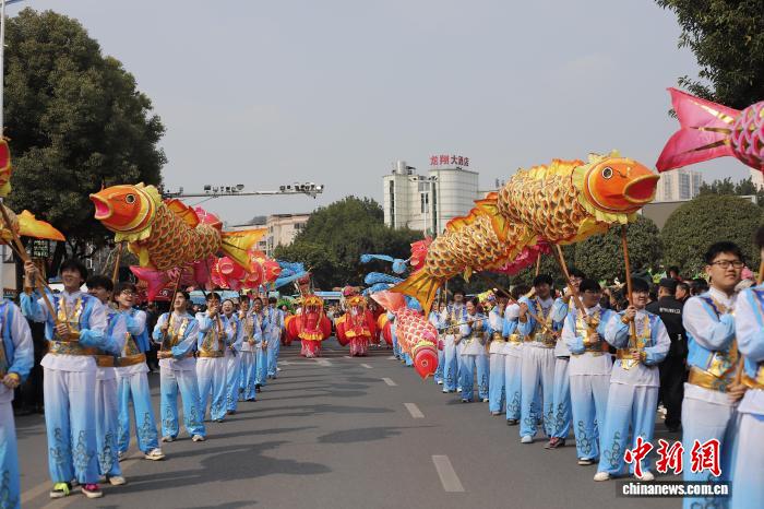 图为2026年铜梁龙舞年夜巡回暨“全国龙人·同舞铜梁”齐平易近狂悲举动第两场要旨巡行举办。周振宇 摄
