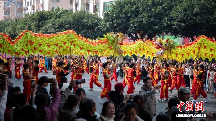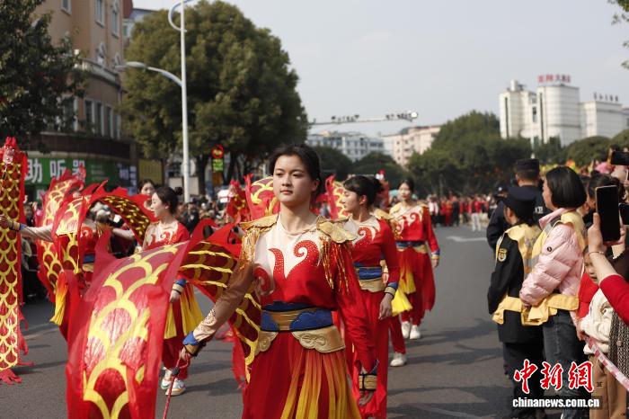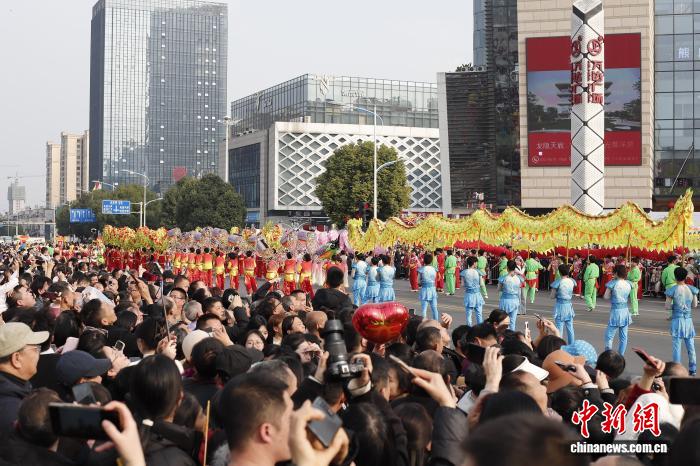 图为2026年铜梁龙舞年夜巡回暨“全国龙人·同舞铜梁”齐平易近狂悲举动第两场核心巡行举办。铜梁文旅团体 供图